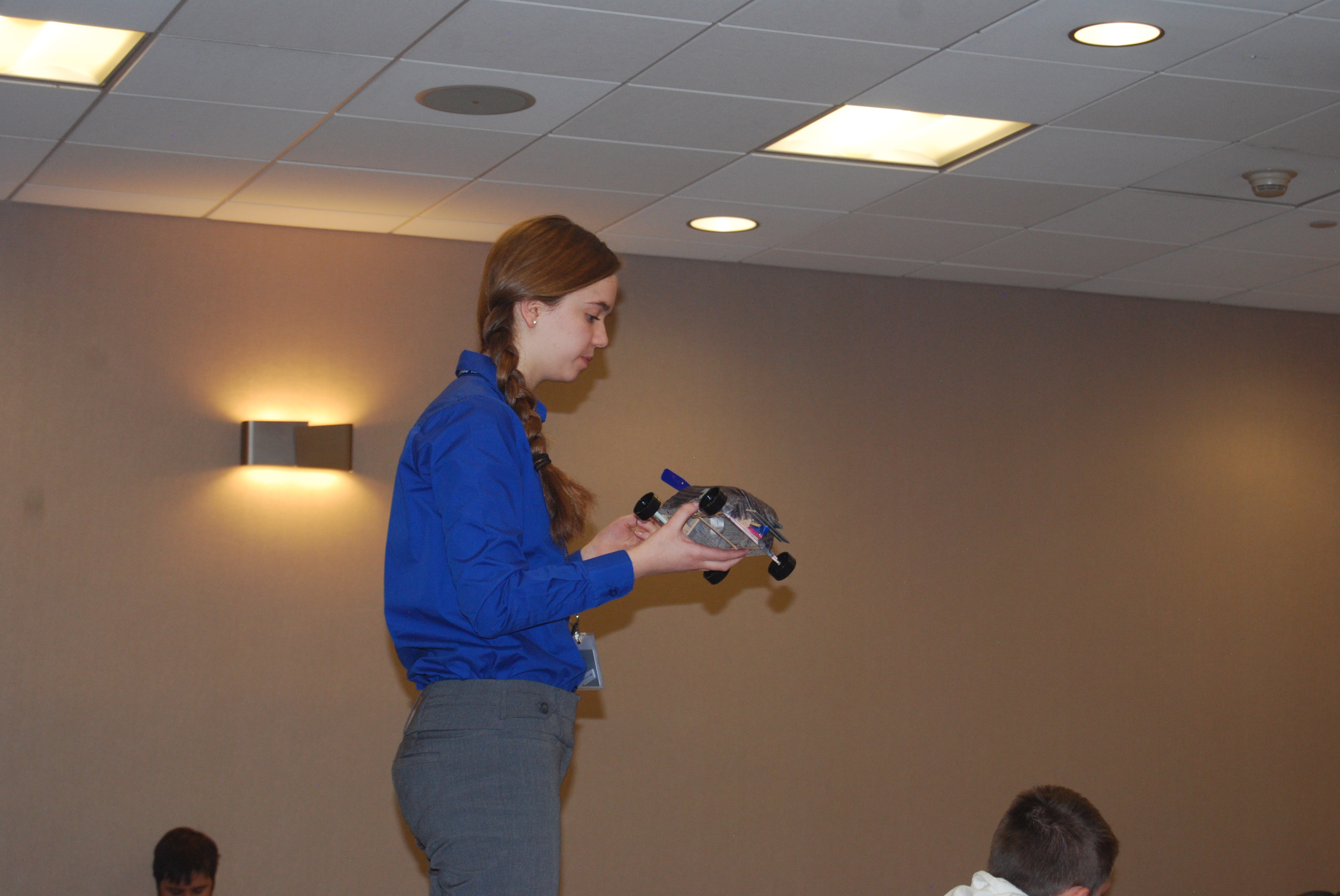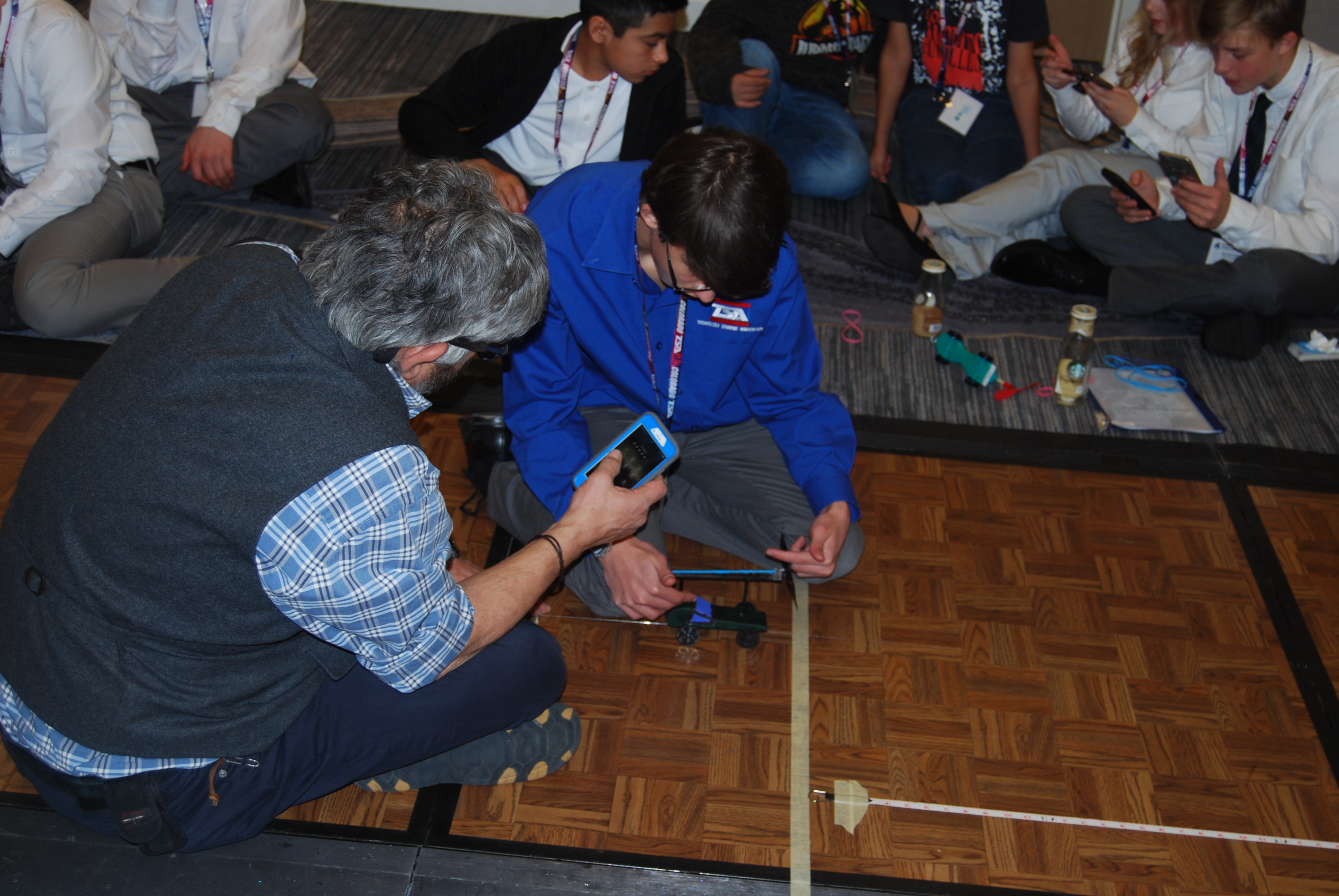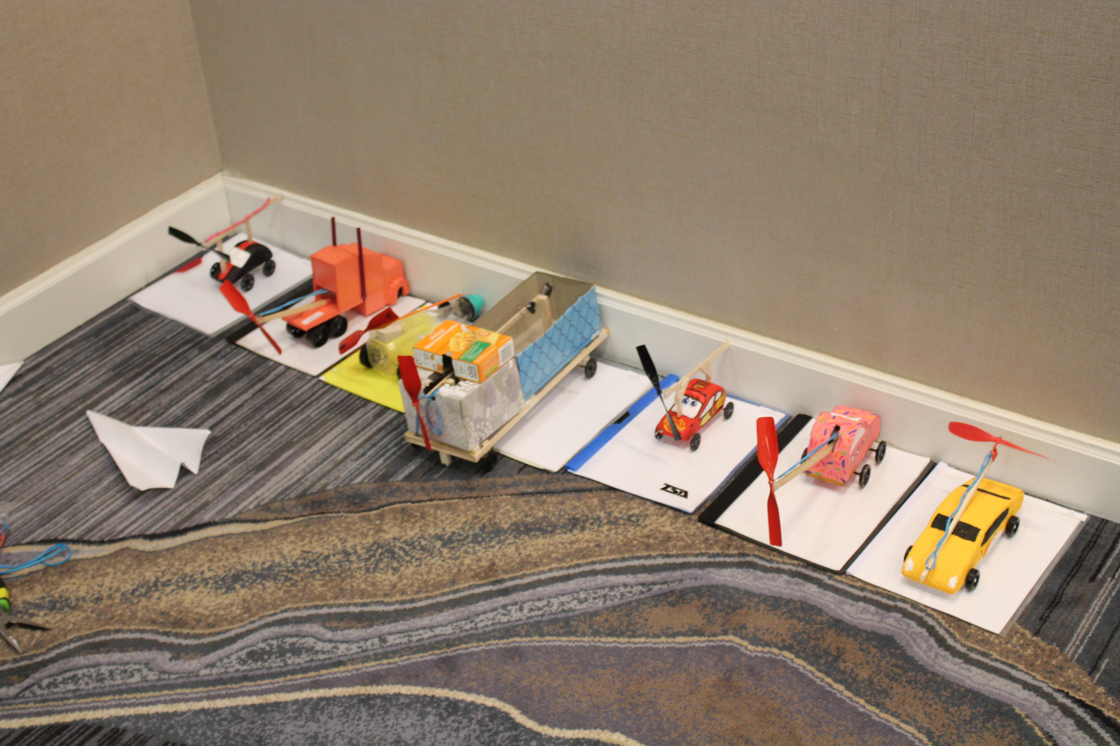 - Here comes the judge – Mr. Mesh helping judge the rubber band cars competition.