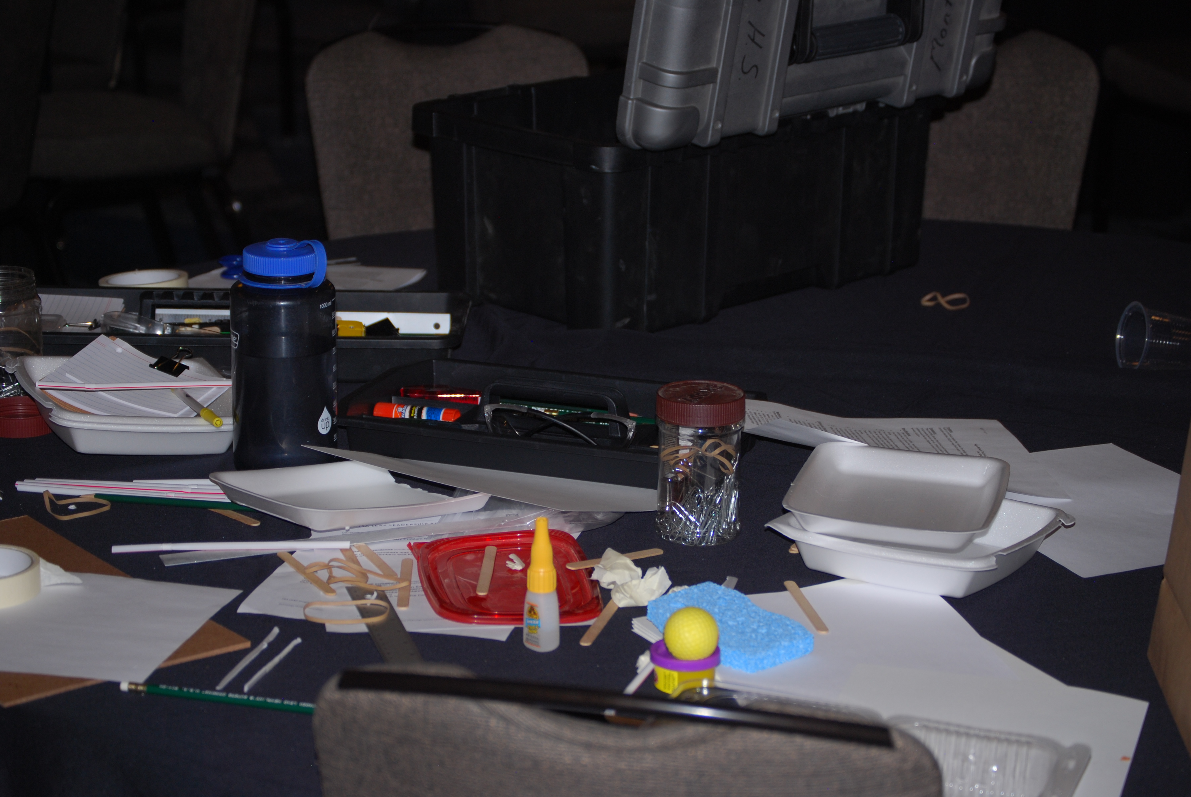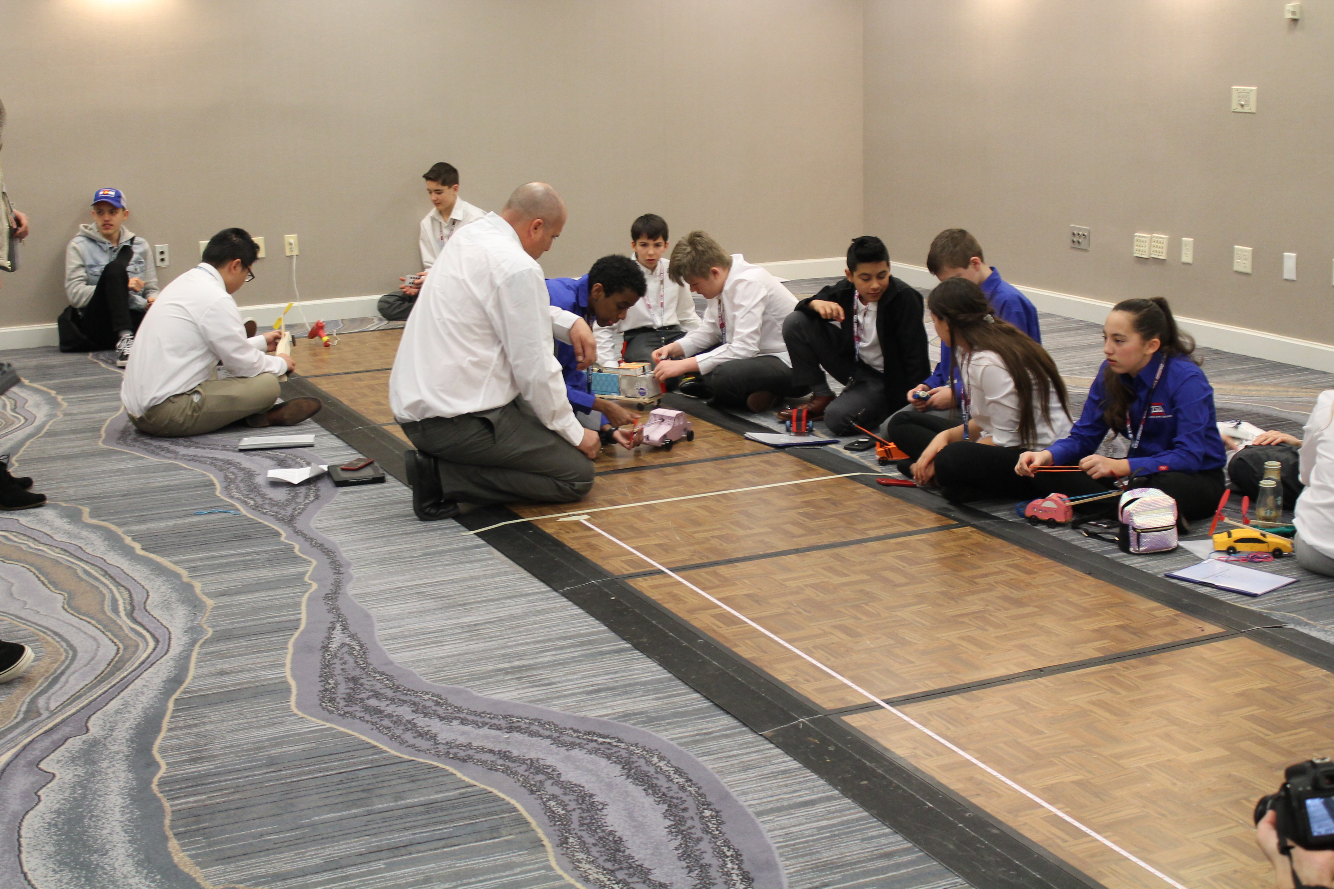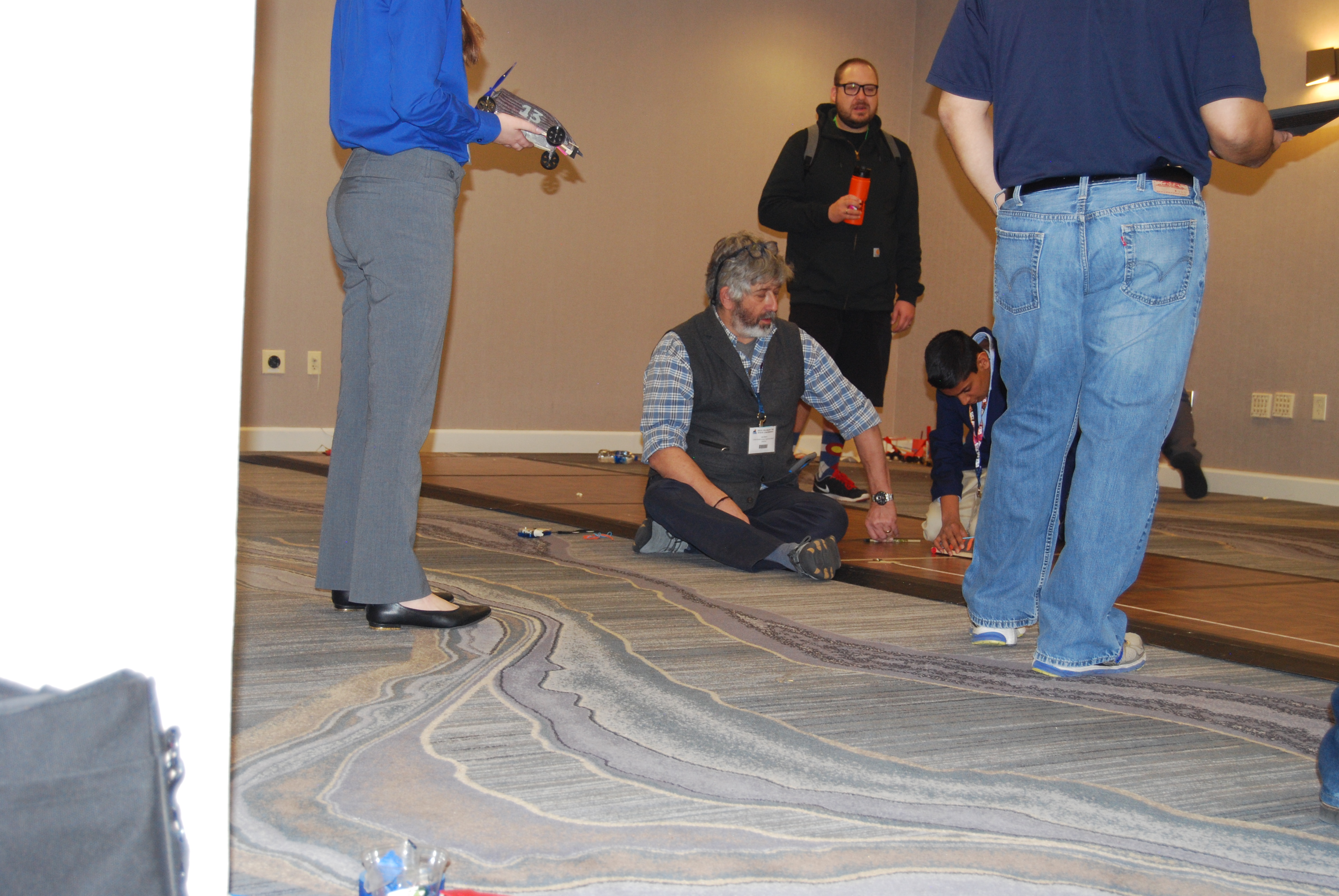 - Here comes the judge – Mr. Mesh helping judge the rubber band cars competition.